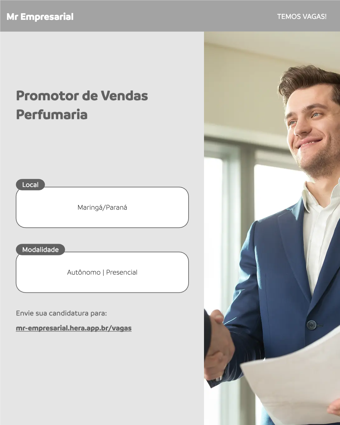 O Promotor de Vendas Perfumaria é responsável por impulsionar as vendas de produtos de perfumaria, atuando diretamente no ponto de venda. Este profissional deve desenvolver estratégias de merchandising. Além disso, é fundamental estabelecer relacionamentos com os clientes e acompanhar as tendências do mercado. A posição requer habilidades de comunicação e negociação, bem como a capacidade de trabalhar de forma autônoma e em equipe.